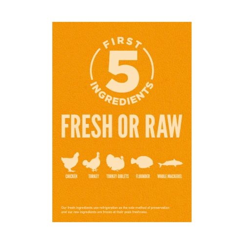 • First 5 ingredients always fresh or raw protein including poultry and fish
