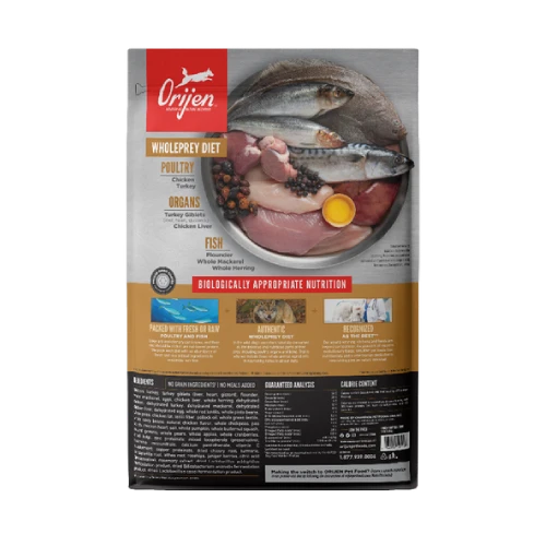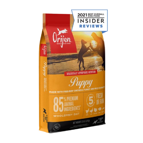 All puppies do best on a Biologically Appropriate diet: one that is rich in protein and fat from quality animal ingredients to support peak development. ORIJEN® Puppy recipe is packed with 85%* quality animal ingredients like fresh or raw+ free-run chicken and turkey**, wild-caught fish, and cage-free eggs. With rich inclusions of Wholeprey animals, ORIJEN dog food is made with the most nutrient-dense, succulent parts of the prey to deliver the nutrition dogs need. The result is a diet for your canine companion that is beyond comparison.